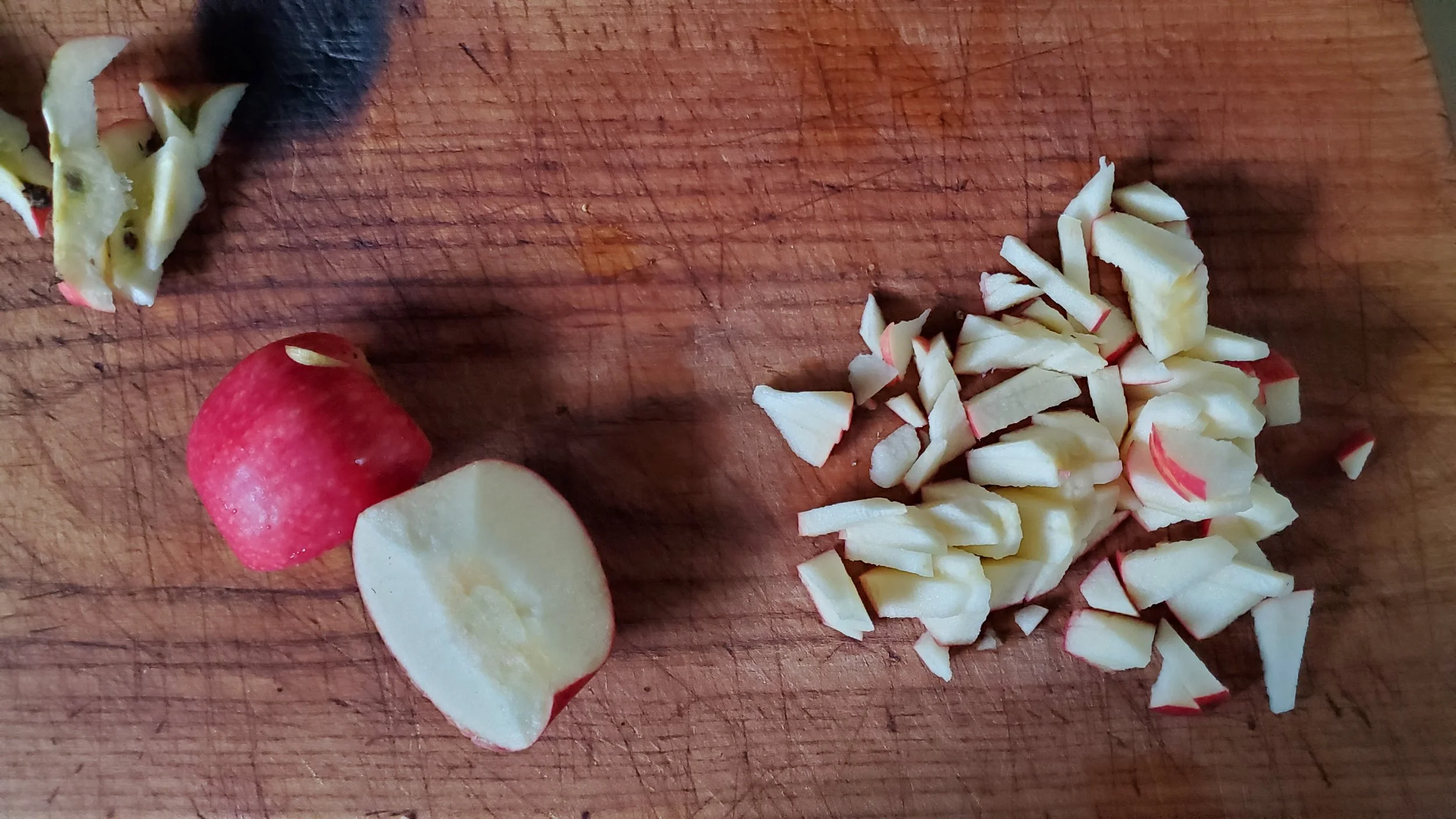 I think of that here, when I go out onto the deck for breakfast. I have been sitting down to the same breakfast for perhaps two years now: muesli with an extra handful of nuts, soaked overnight, chopped apple, yoghurt.